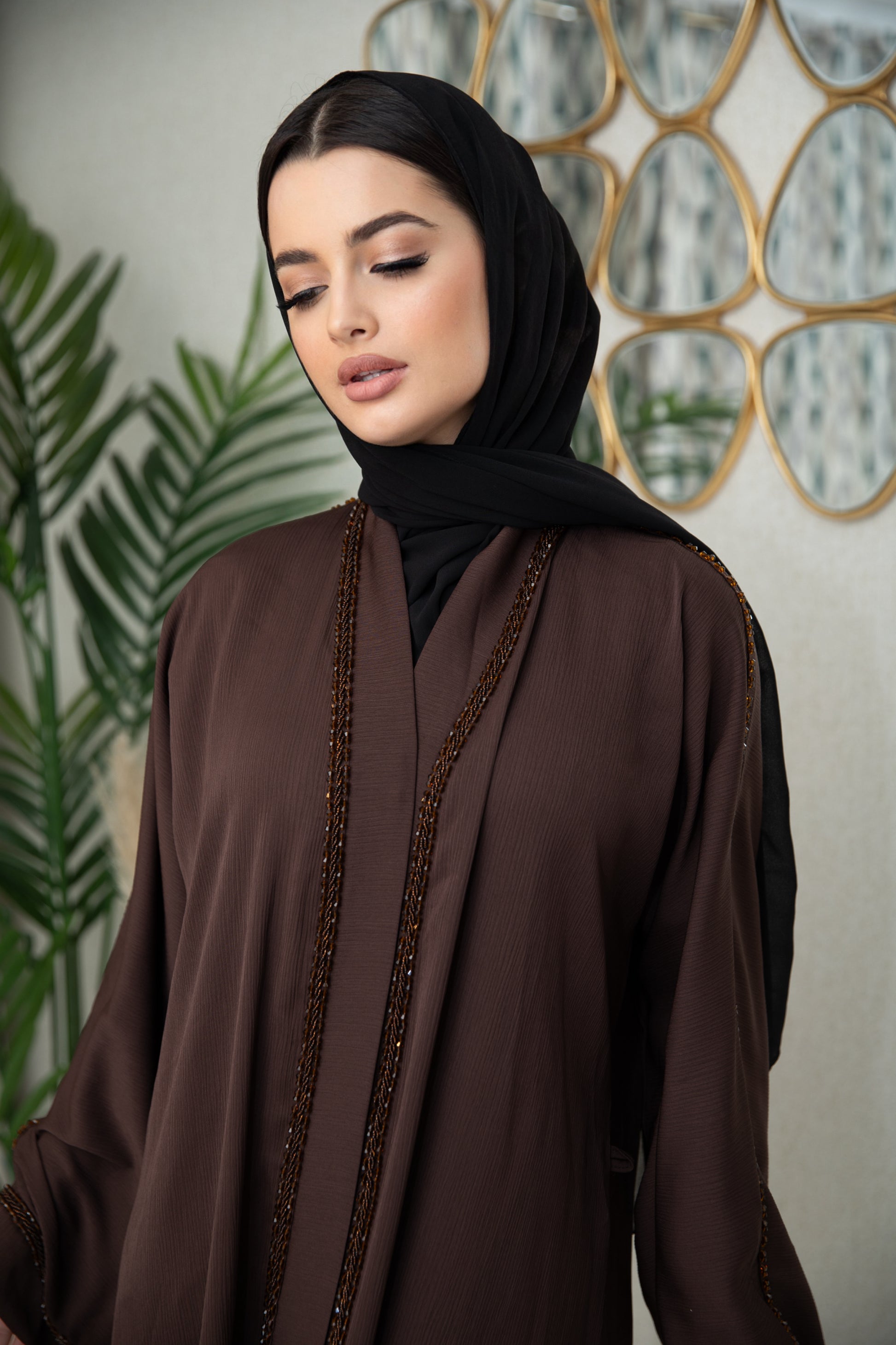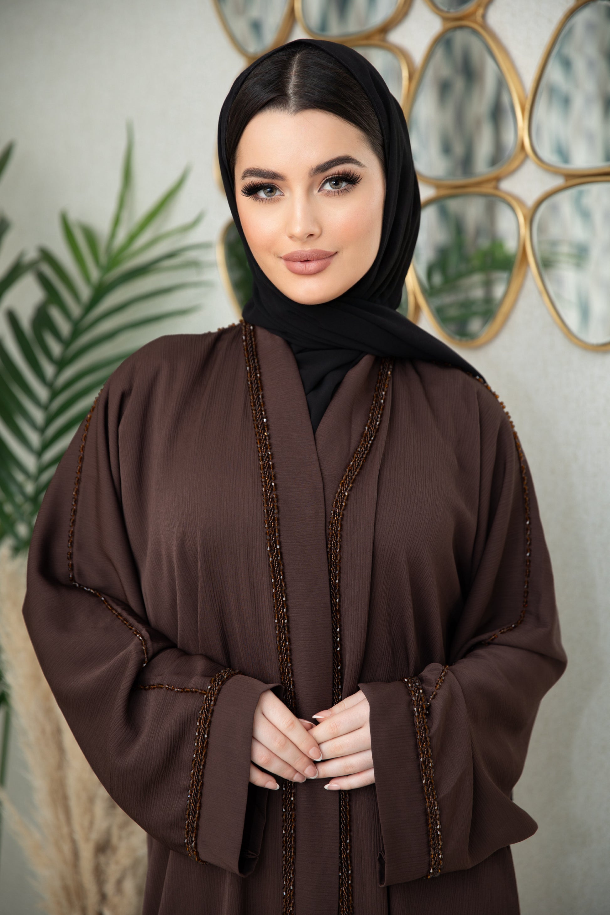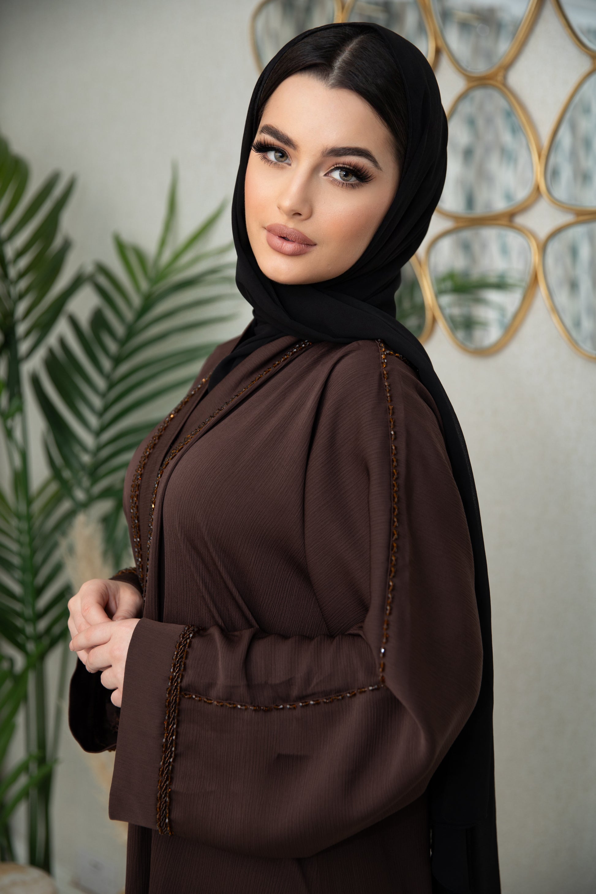 Indulge in luxury with the Frazeen abaya. Its effortlessly elegant design and affordable price make it a must-have for any fashion-forward woman. Crafted with comfort in mind, its free size ensures a perfect fit for every body type. Elevate your wardrobe with this exclusive piece.
