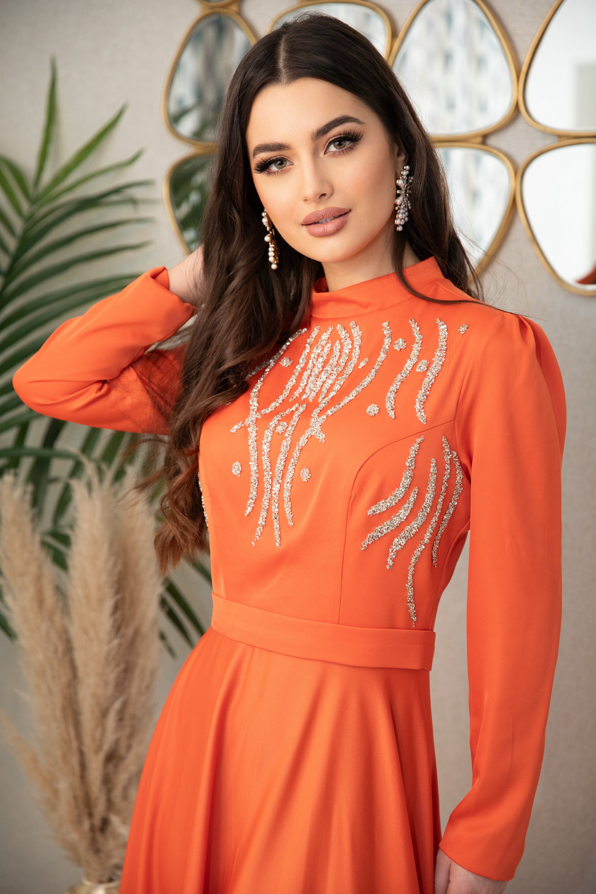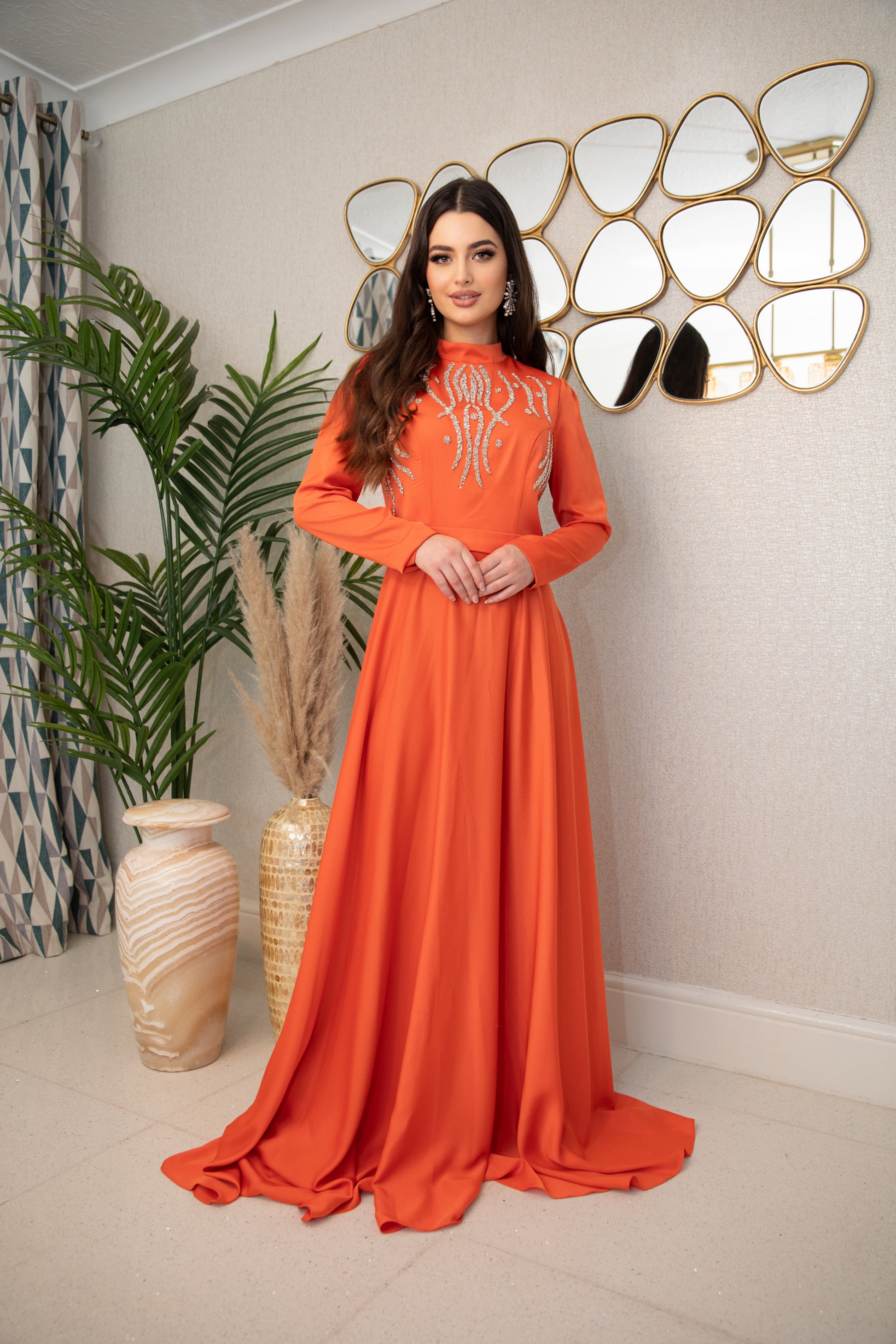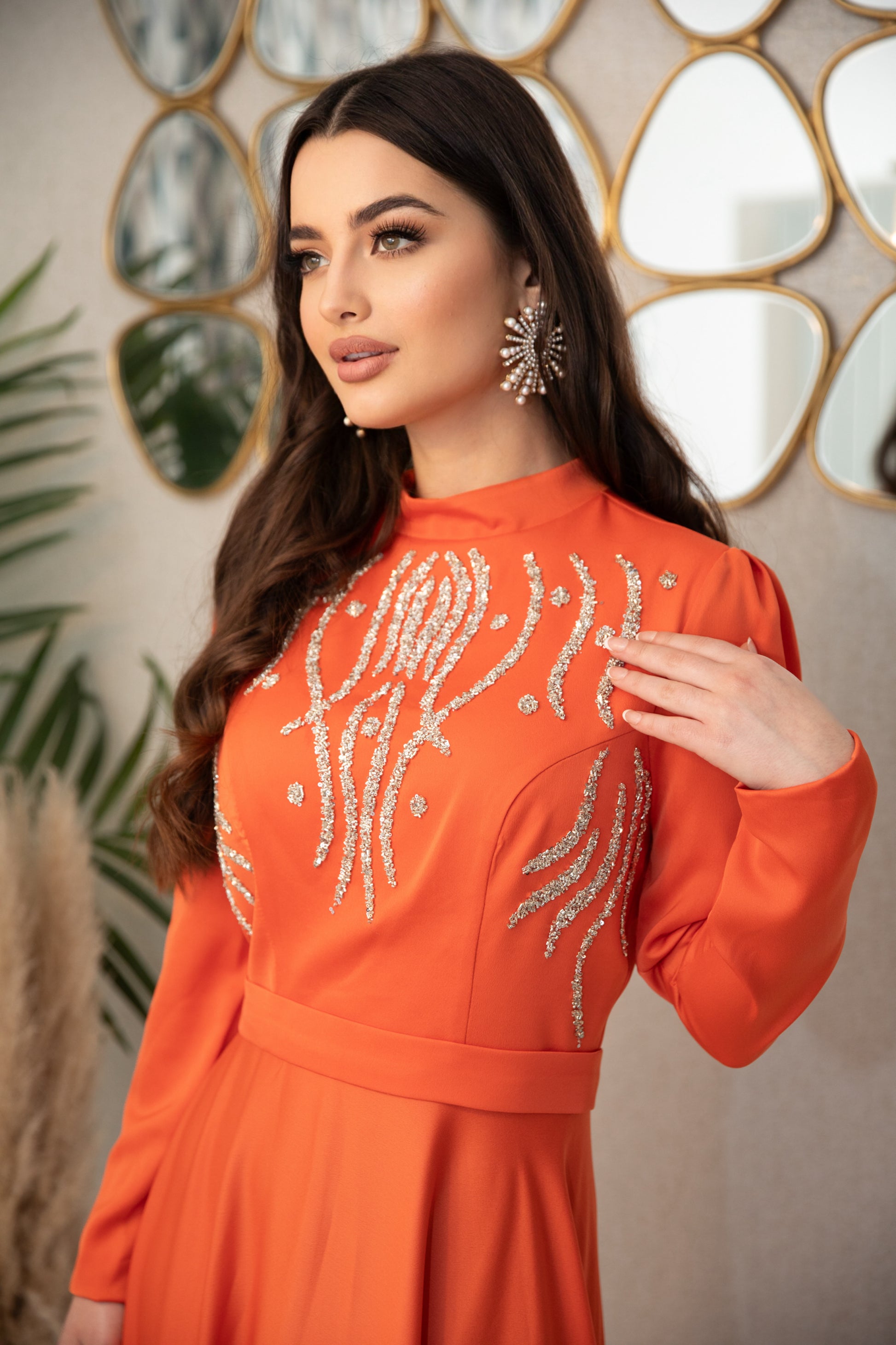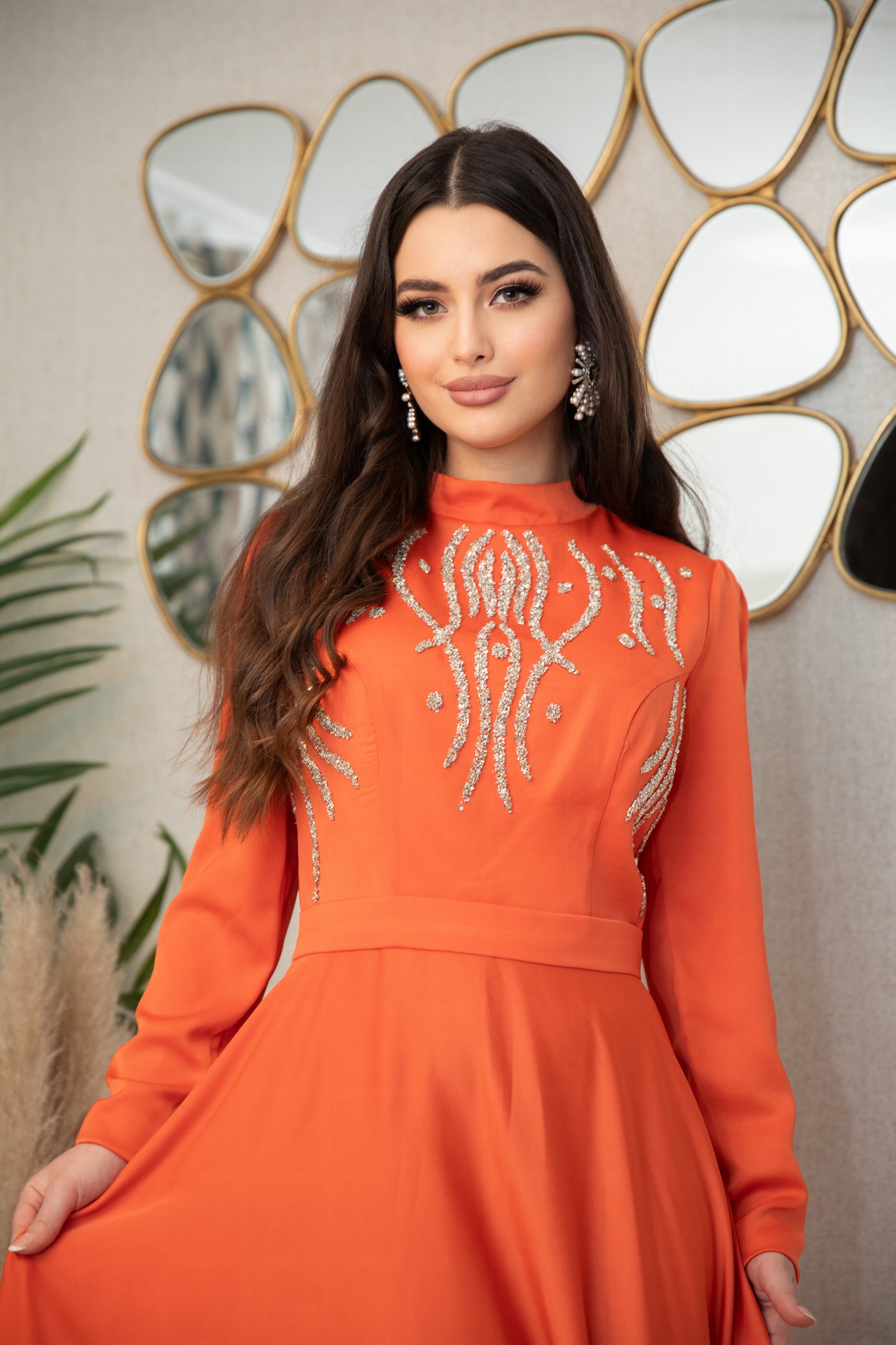 Add a pop of color to your wardrobe with the Narenji dress! This vibrant orange dress features stunning detailing that will make you stand out in any crowd. Elevate your style and feel confident in this unique and beautiful piece.