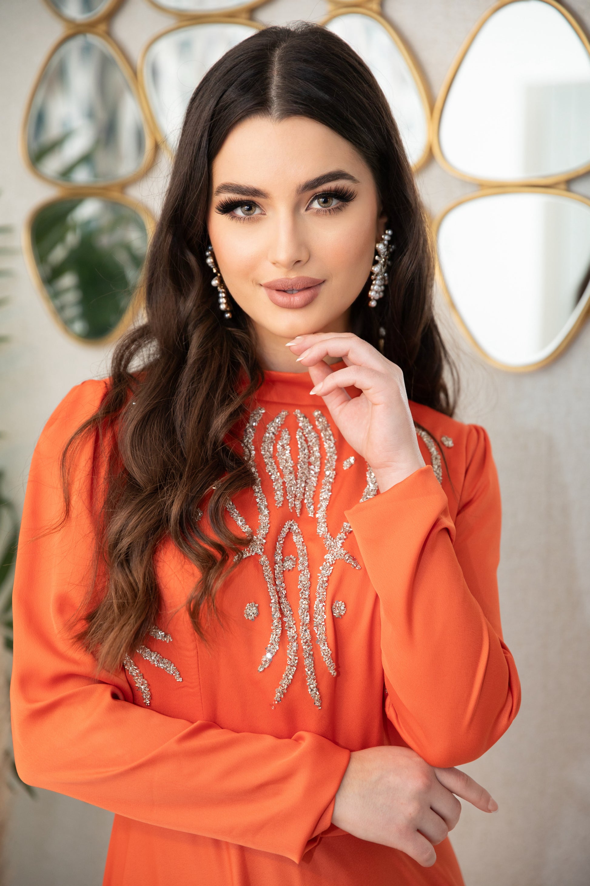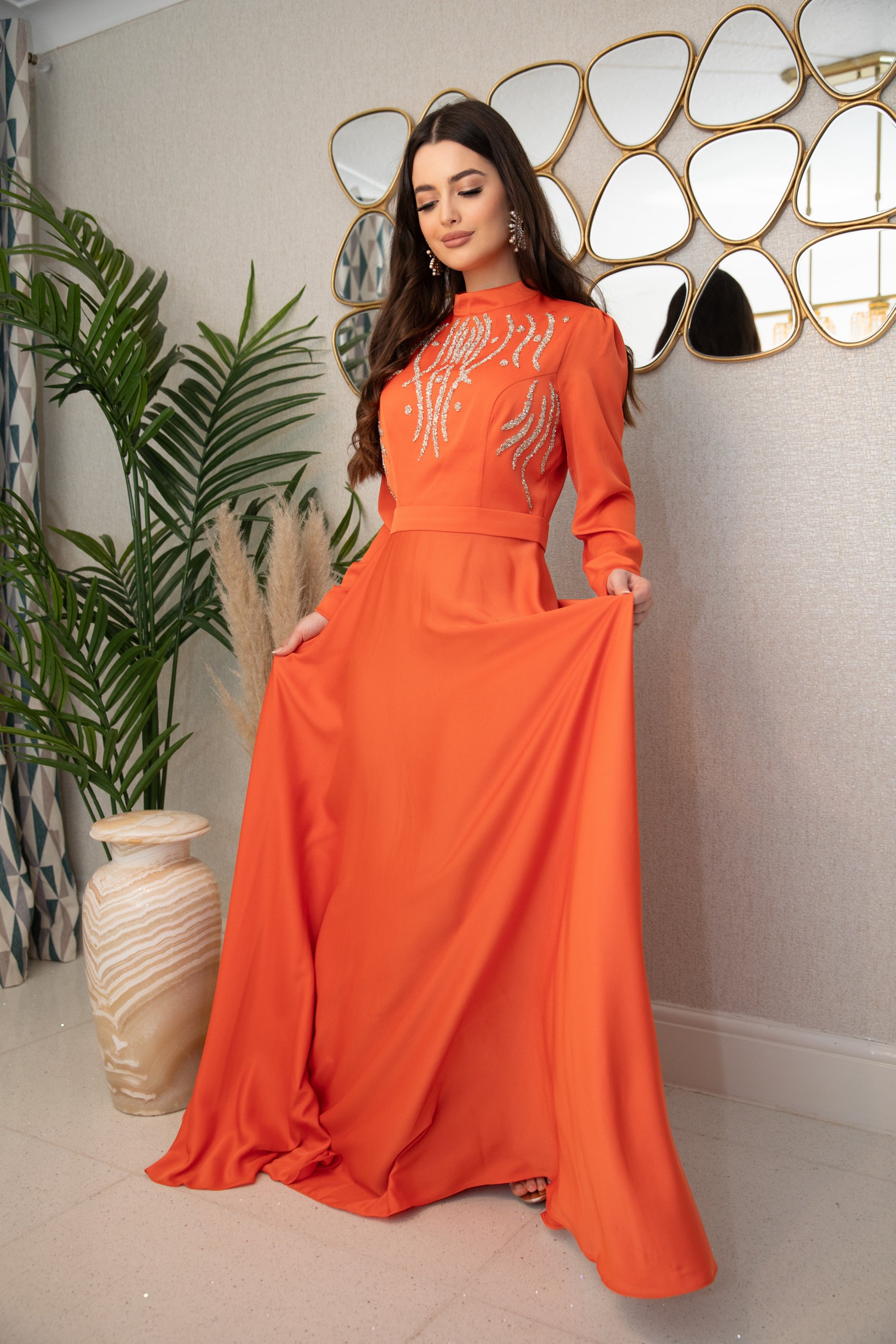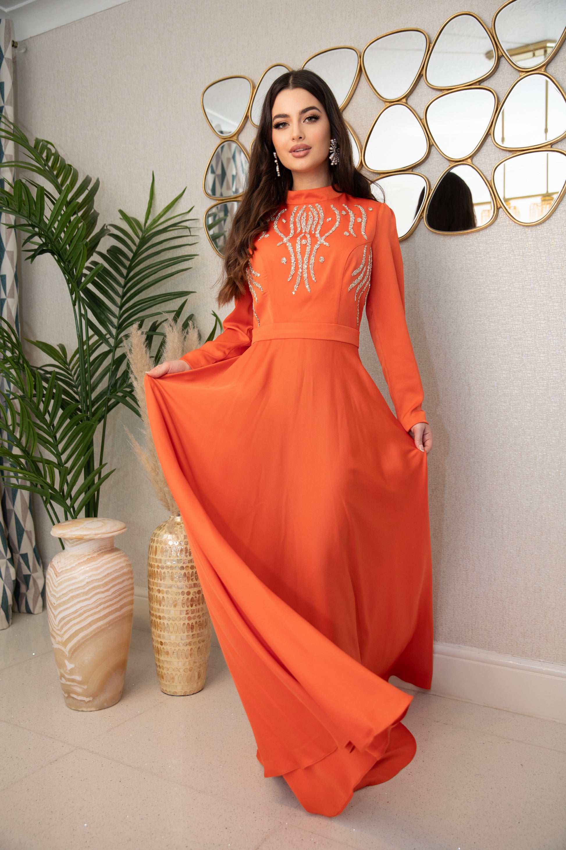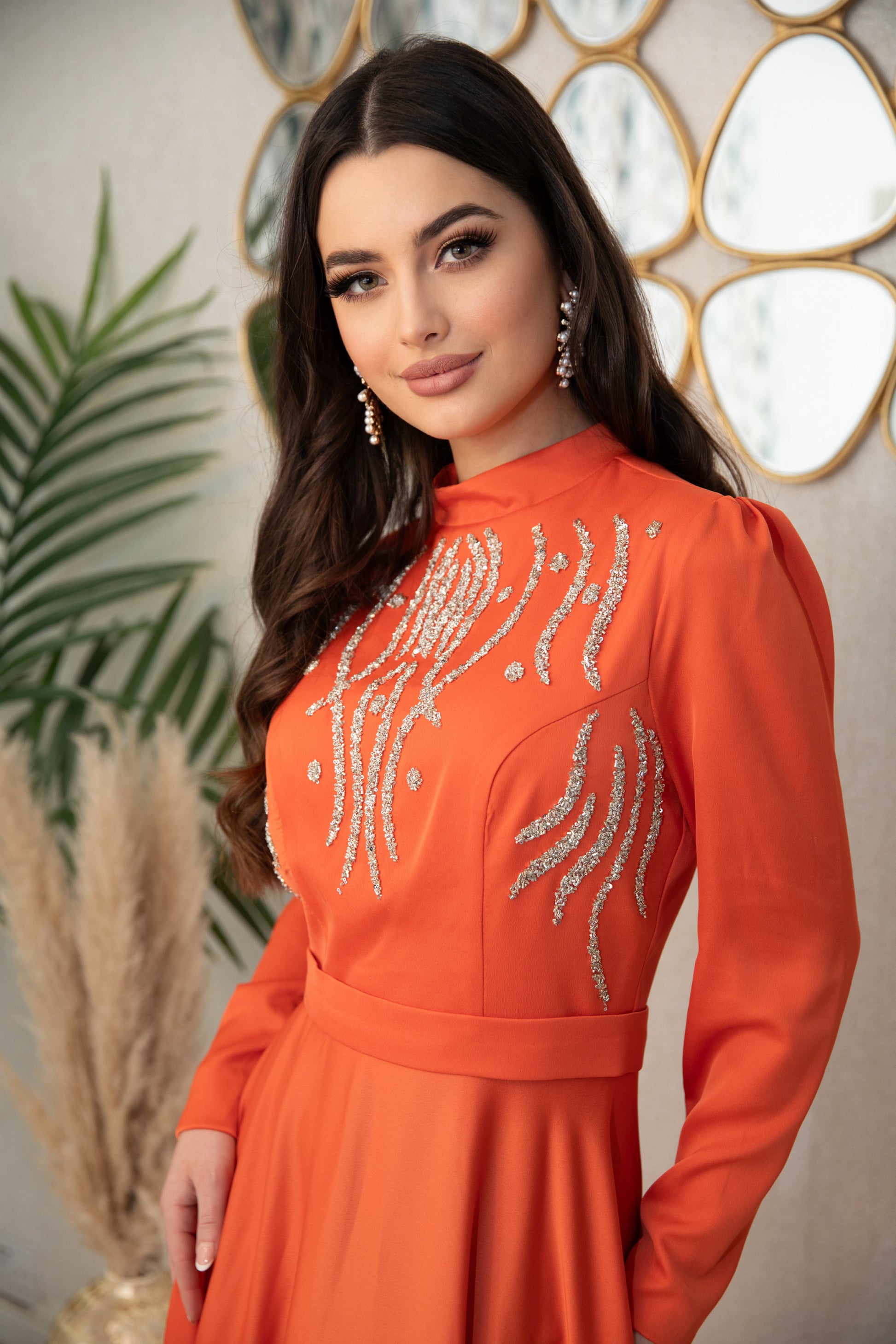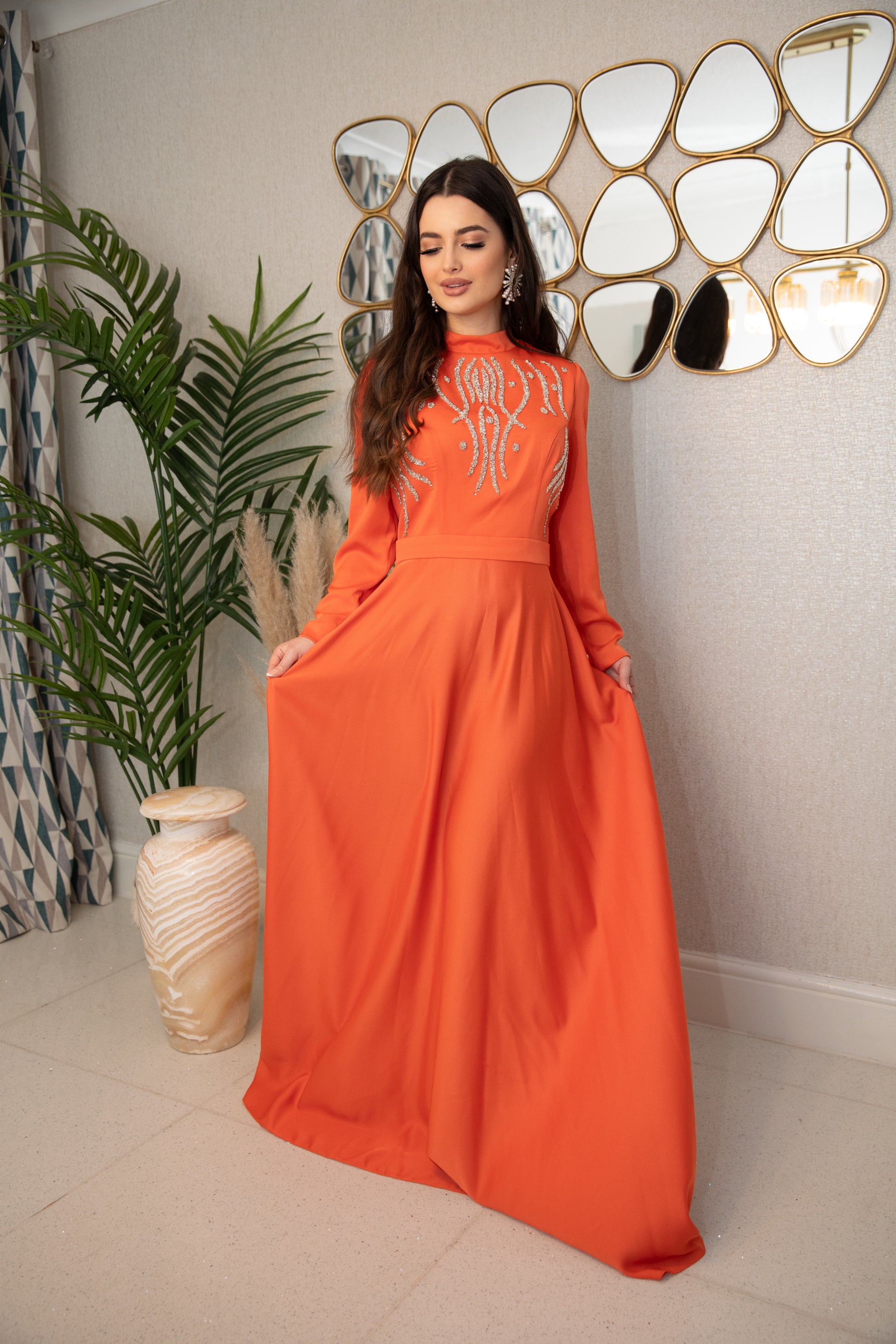 Add a pop of color to your wardrobe with the Narenji dress! This vibrant orange dress features stunning detailing that will make you stand out in any crowd. Elevate your style and feel confident in this unique and beautiful piece.