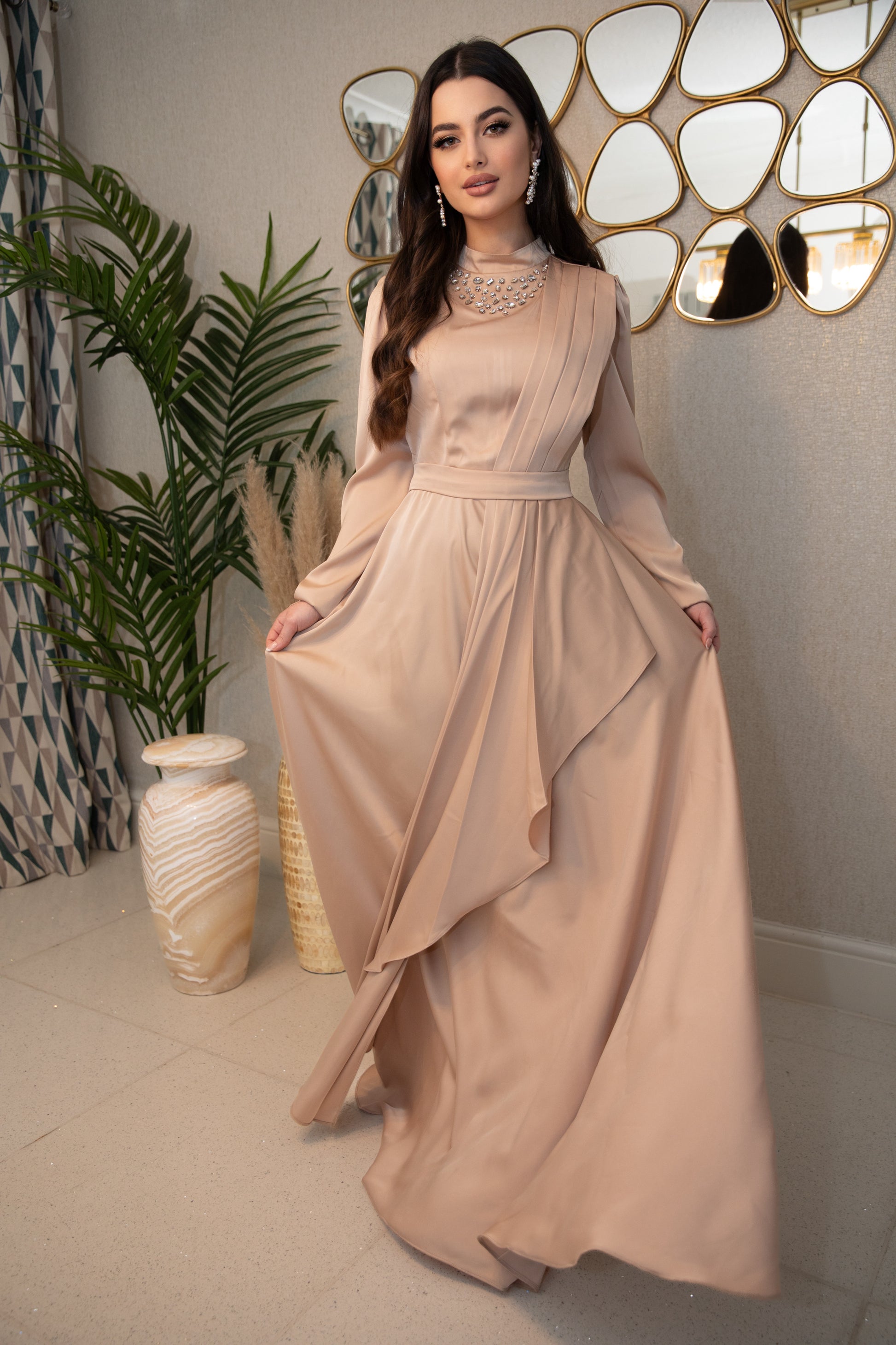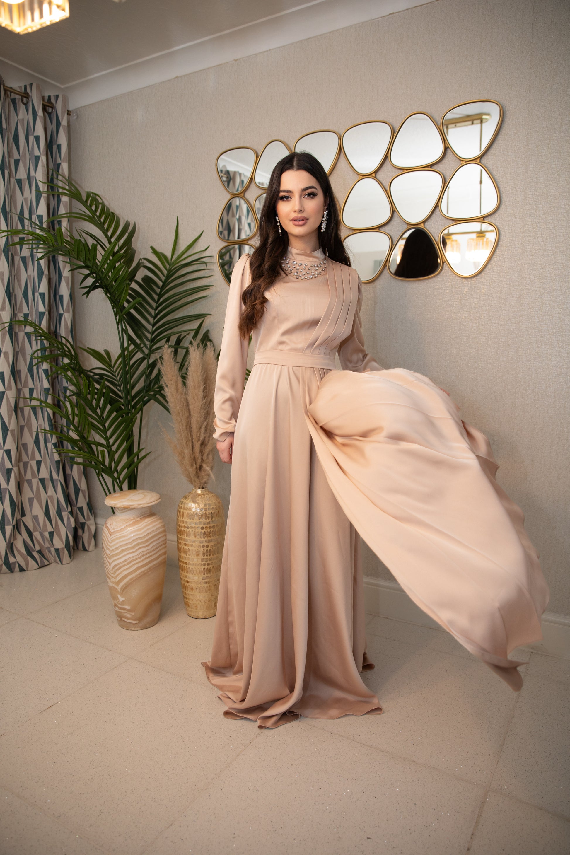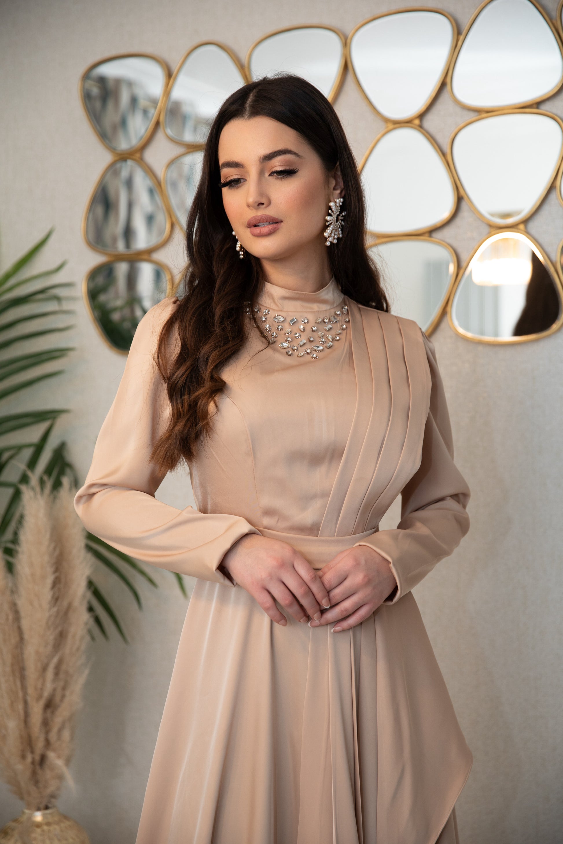 Embody elegance in the stunning Teelayi gold dress. Its intricate stone work and flowing silhouette make it a must-have for any special occasion. Elevate your style and turn heads with this exclusive piece.