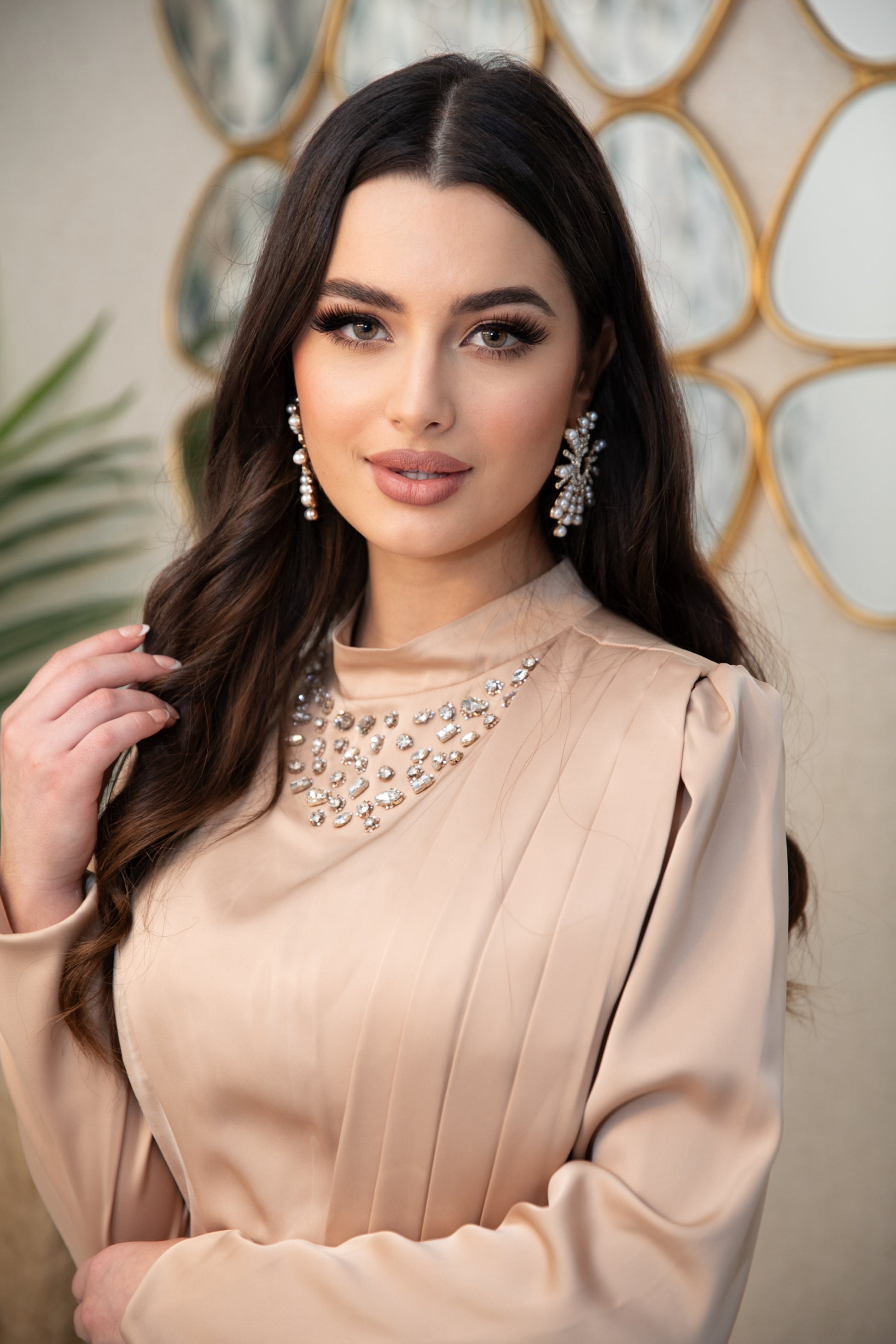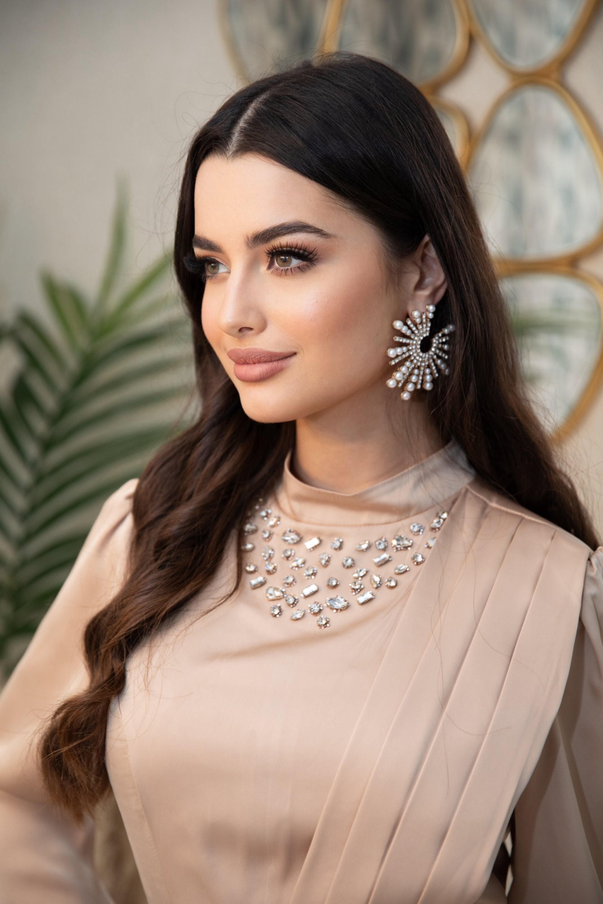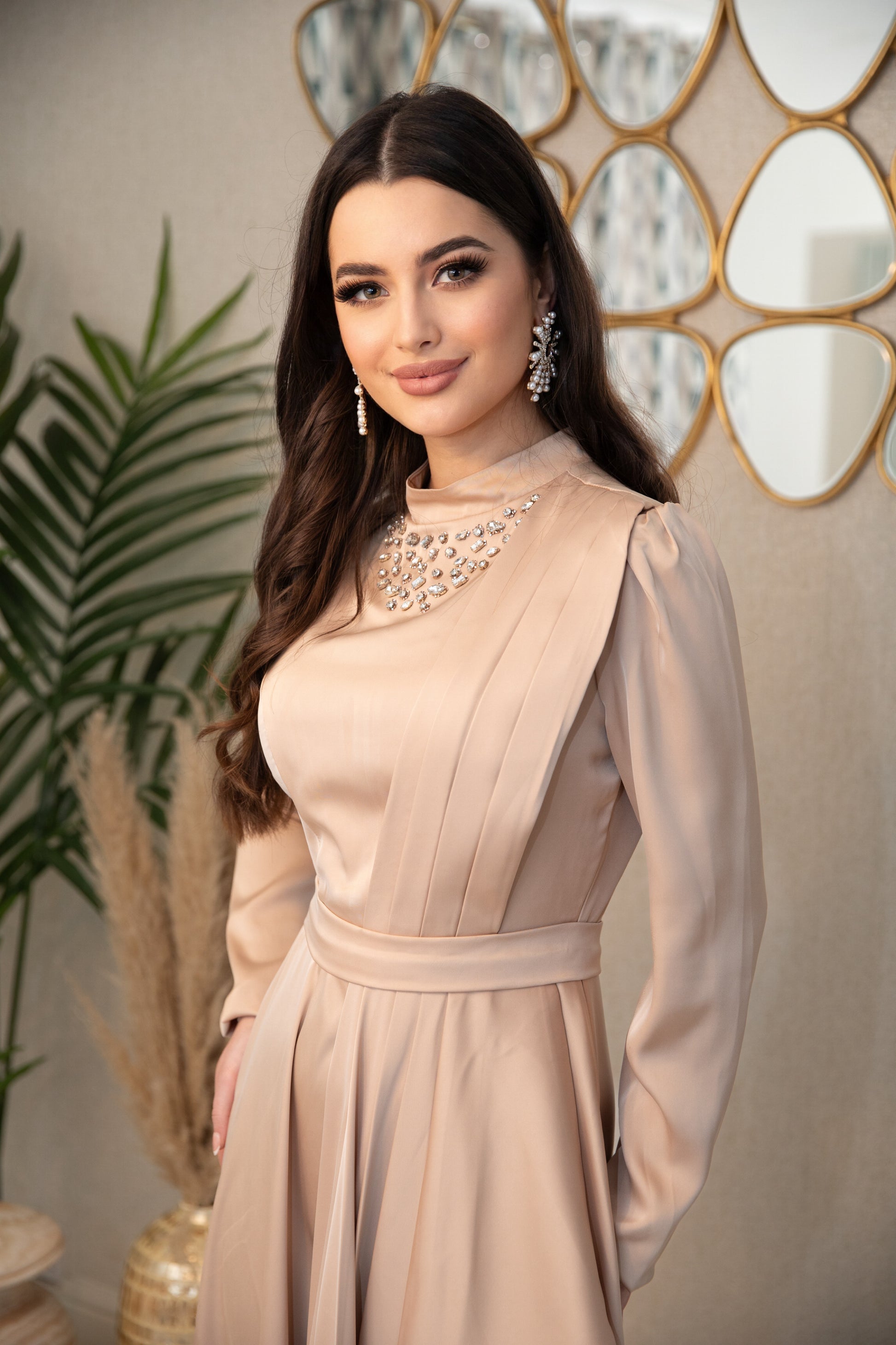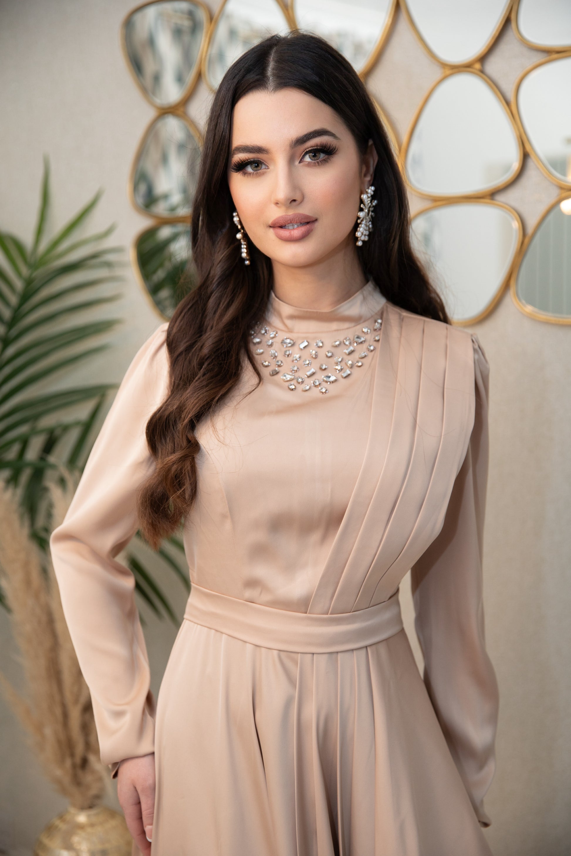 Embody elegance in the stunning Teelayi gold dress. Its intricate stone work and flowing silhouette make it a must-have for any special occasion. Elevate your style and turn heads with this exclusive piece.