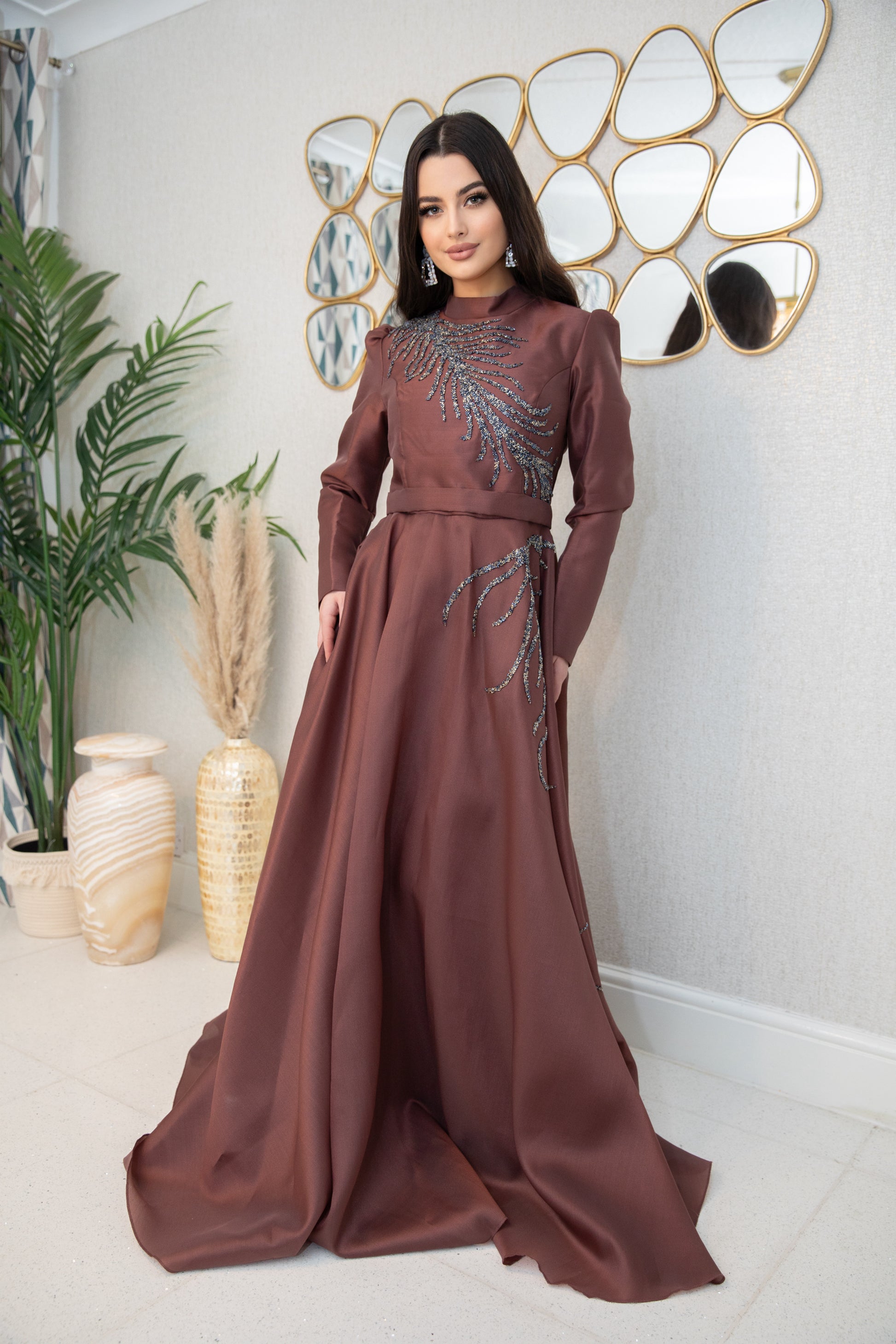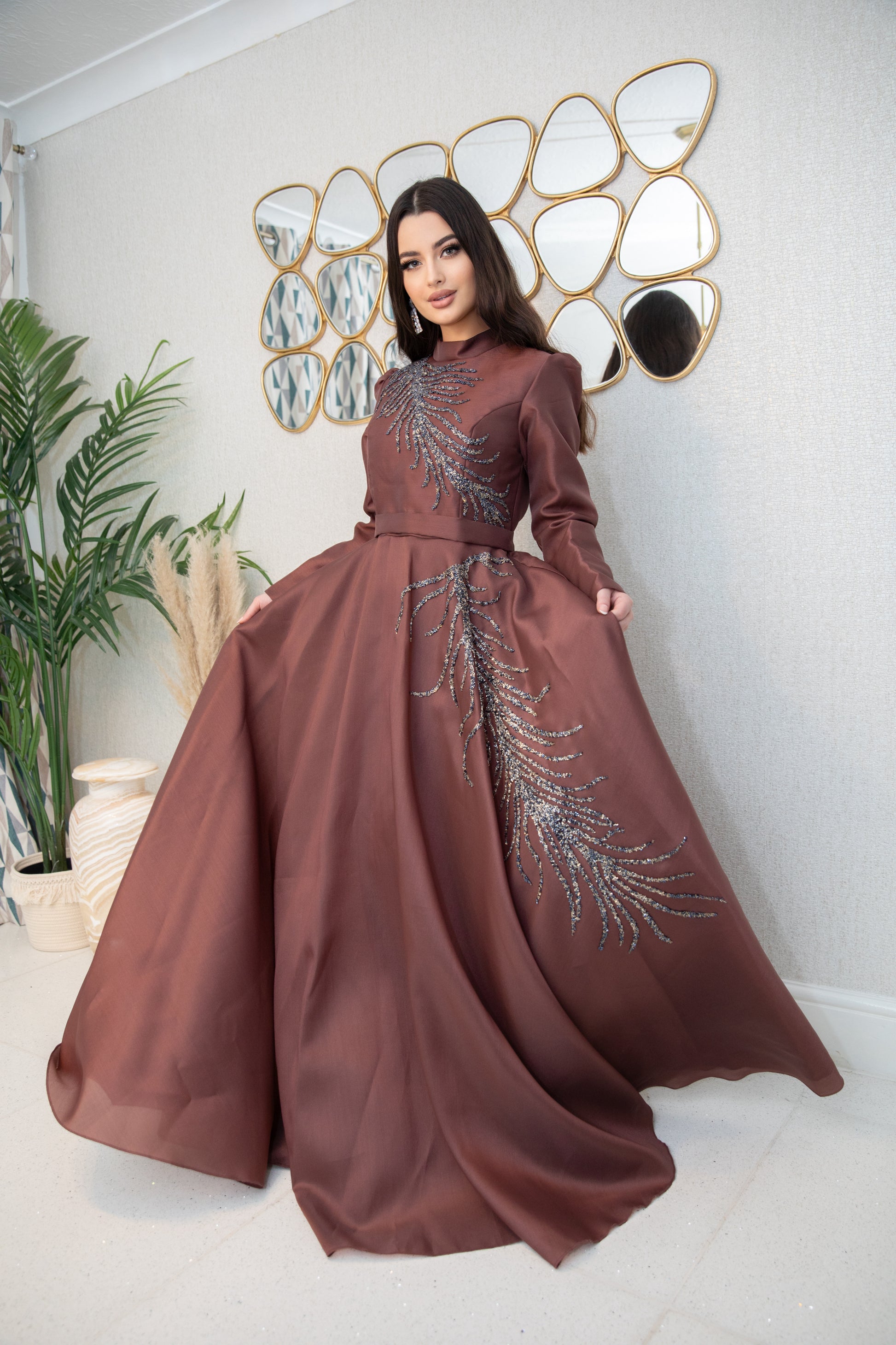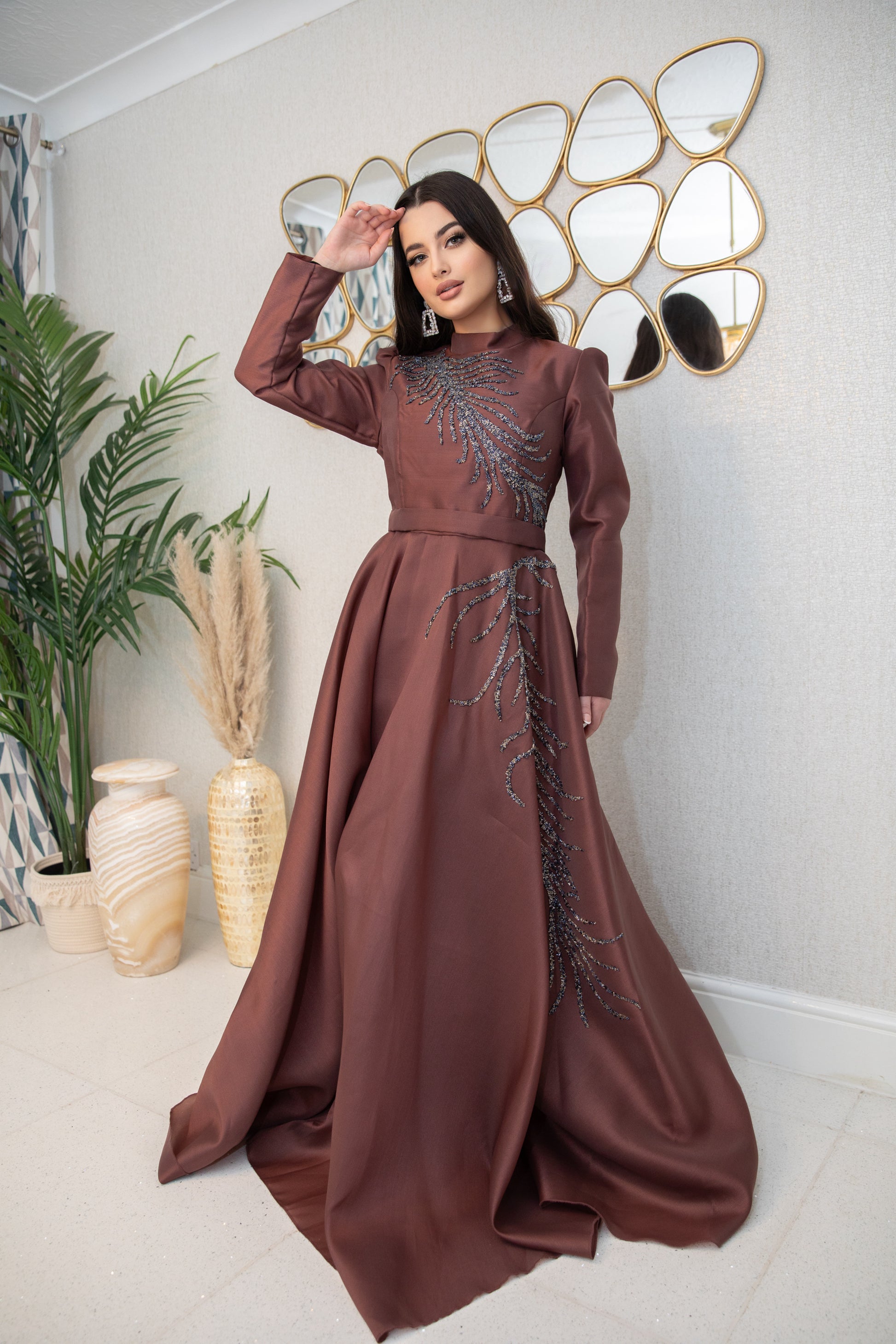 Indulge in the luxurious and ethereal beauty of Xara. Crafted from exquisite material and adorned with intricate bead work, this flowing dress will elevate your style to new heights. Exude elegance and exclusivity with every step, as you grace any occasion with the enchanting allure of Xara.