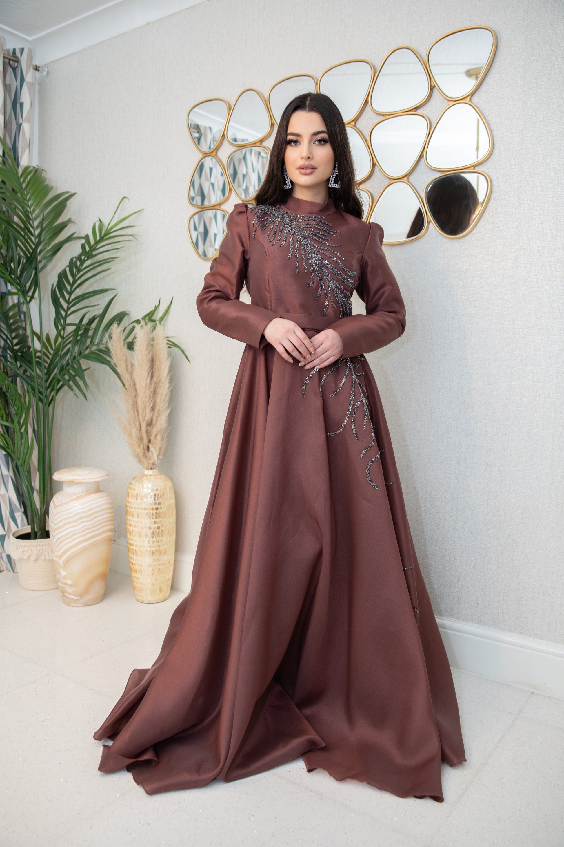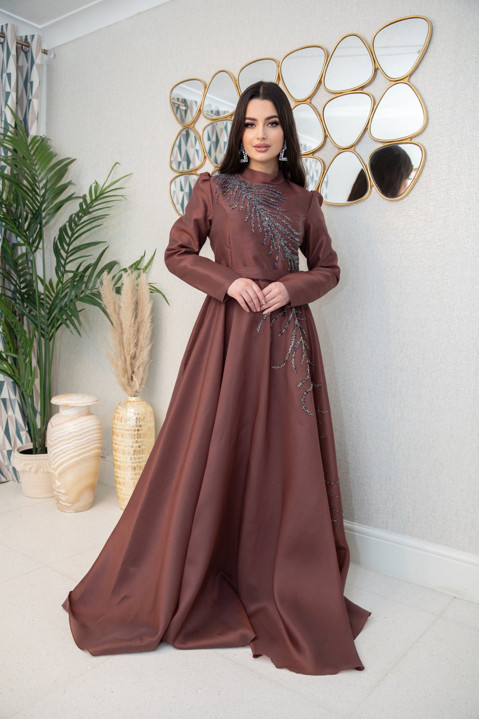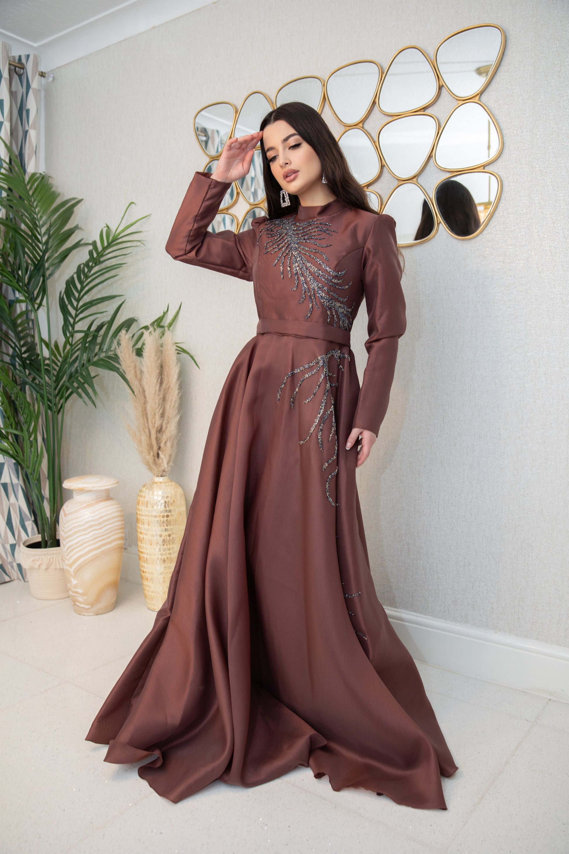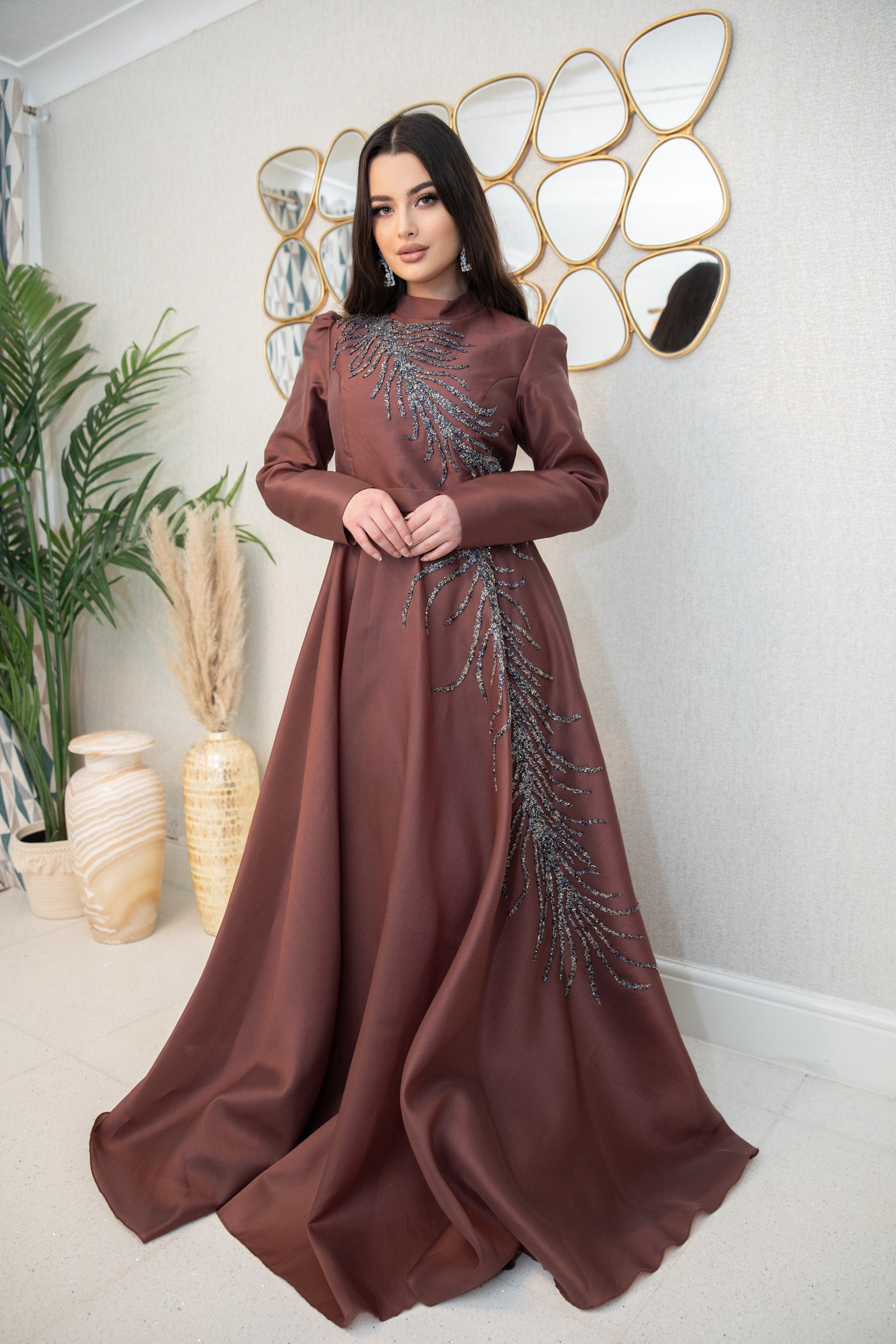 Indulge in the luxurious and ethereal beauty of Xara. Crafted from exquisite material and adorned with intricate bead work, this flowing dress will elevate your style to new heights. Exude elegance and exclusivity with every step, as you grace any occasion with the enchanting allure of Xara.
